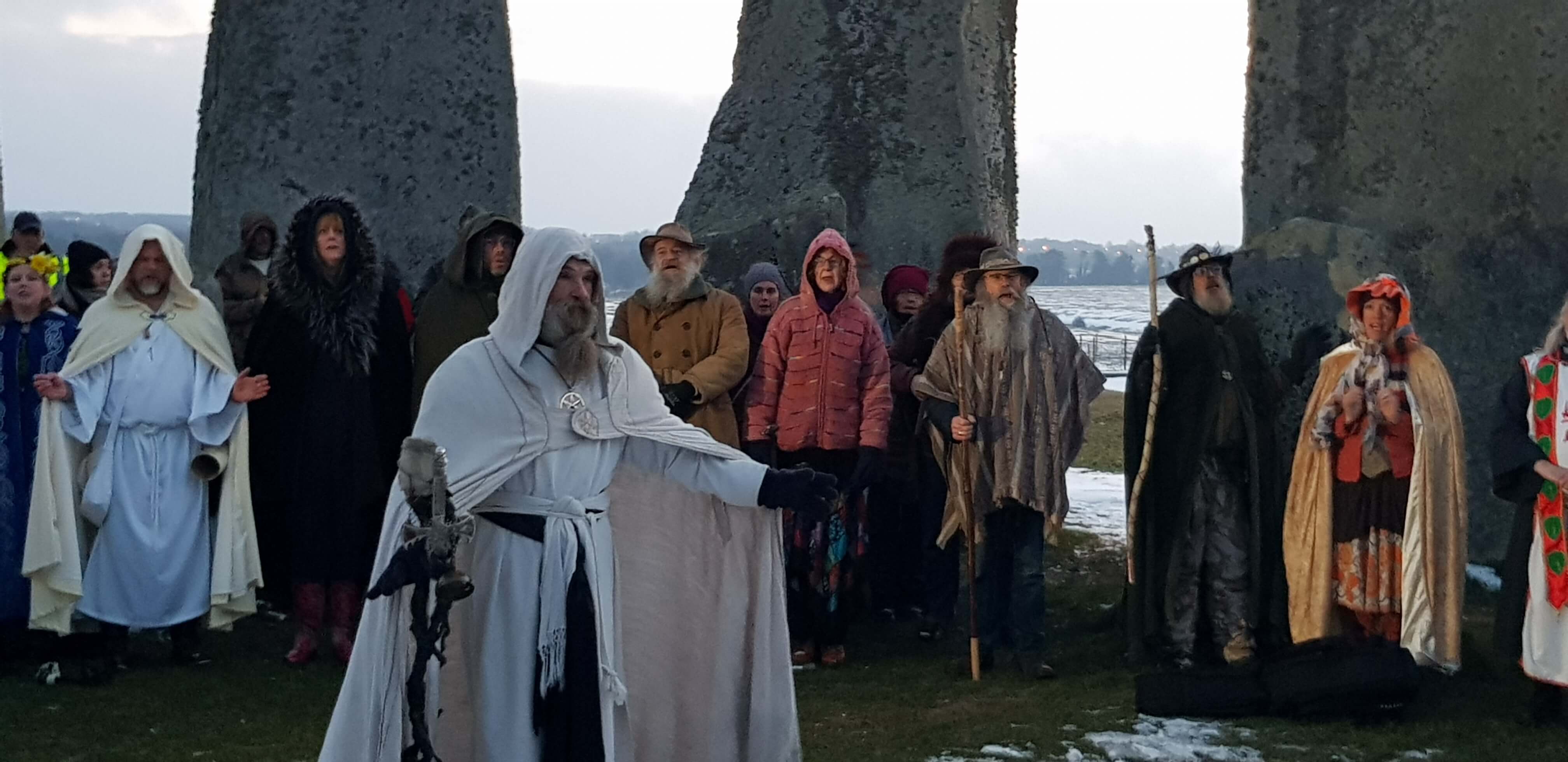 With the opening up of access for the summer solstice in 2000 many old veterans were reunited and new bloods were initiated into the Stonehenge family, a Hakim Bey ‘temporary autonomous zone’ or Brigadoon that continues to manifest (excluding periods of pandemic lockdown) at the solar festivals once more, albeit in a more civilised, co-ordinated way – with infrastructure such as parking, toilets, lighting, and walkways, provided by English Heritage, to manage the often large crowds. And new stars have emerged in this Neolithic platform for a new millennium – made internationally famous by the news crews and, increasingly so, by the smartphone footage shared on social media – including the striking crimson ensemble known as the Shakti Sing Choir, who introduce some quality harmonies to an often ragged, and discordant, free-for-all. Yet Stonehenge is nothing if not a broad church, and all are welcomed – whatever their ability. This is part of its popularity, resilience, and unique ambience – it offers a chance for everyone to shine, to have their moment in the sun, ‘under the eye of light’ as the druids say. It offers a world-famous platform for exhibitionists, the ultimate busking spot, but also for everyone to dress up, strut their stuff, and have a good time. Some have used Stonehenge as a backdrop for their own pop videos or comedy routines – the Norwegian comedy duo, Ylvis, combined the two in their own mock-anthem of 2013, ‘Stonehenge’; Germanic rapper Kellegah throws Stonehenge into the mix in his song of 2019 without any apparent significance; while Soundgarden’s grungy ‘Exit Stonehenge’ of 1994 starts with the memorable line, ‘Jesus I can’t feel my penis.’ And yet, in contrast, gentle, heartfelt songs such as Kellianna’s ‘Stonehenge’ evoke the spiritual feelings of many a pilgrim to the stones. Without a doubt, music and spirituality go hand-in-hand at Stonehenge – it provides an expression of belief system, ideology, and lifestyle.